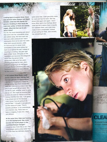Te espera una Juliet honrada, decente. No sólo hay una agradable escena entre ella y Sayid en la playa, sino que terminará siendo la salvadora, a disgusto de Kate. Hablando de ello, hay un momento Jack-Juliet-Kate que hará que mojes tus pantalones. Es muy divertido. Es algo bastante sutil, pero requerirá de su máxima atención.